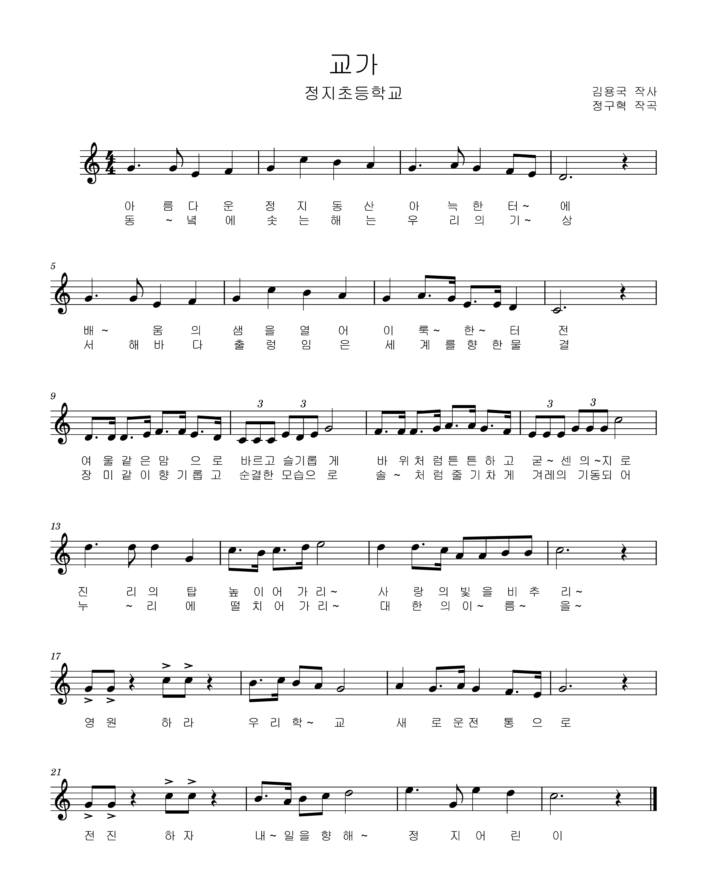 매서운 찬바람에도 늘 푸른 소나무처럼 힘들고 어려운 일이 있을 때 마다 강인한 정신으로 헤쳐 나가는 한결같은 정지 어린이를 의미